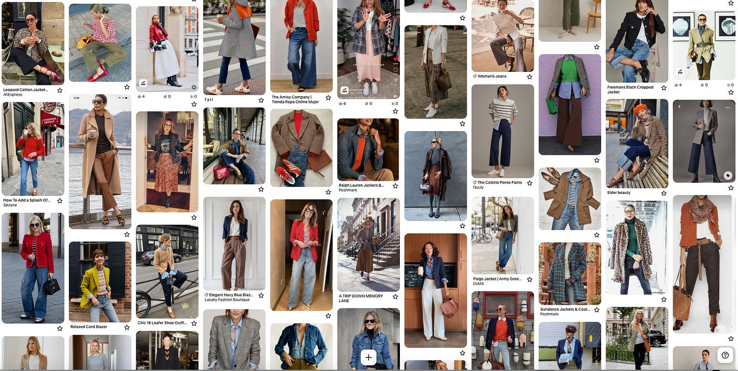 See if youâre drawn to a certain color palette. Or if you keep picking layered looks. Check to see if your inspo is all about fall dresses & knee high boots or cozy sweaters & jeans.